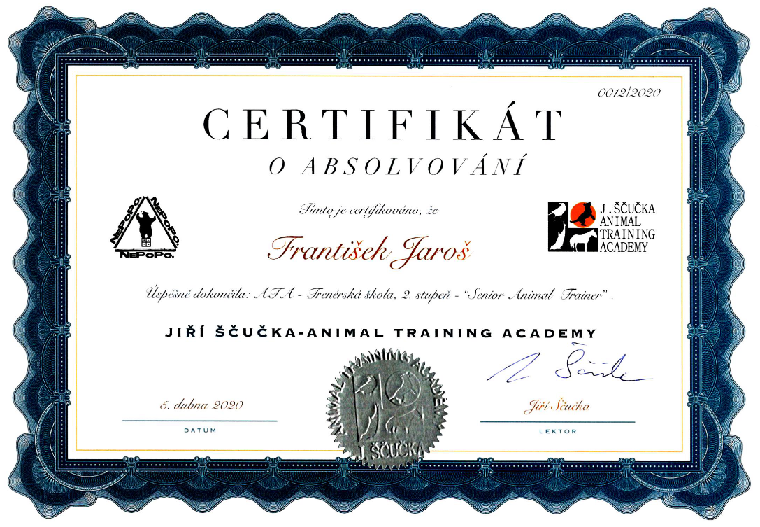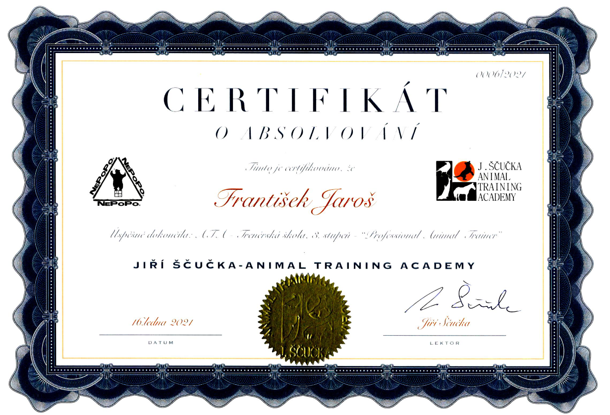 Úspěšně jsem absolvoval všechny tři stupně – Junior, Senior a Professional Animal Trainer.